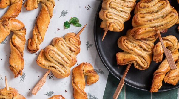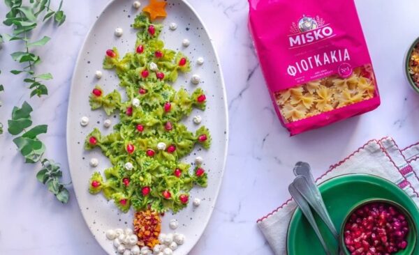 Τέλος στολίζουμε το δεντράκι μας με ρόδι και σερβίρουμε.