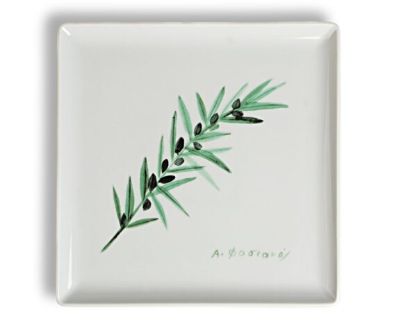 Συλλεκτικό αριθμημένο πορσελάνινο πιάτο με έργο του Αλέκου Φασιανού, Μουσείο Ελιάς και Ελληνικού Λαδιού, Σπάρτη