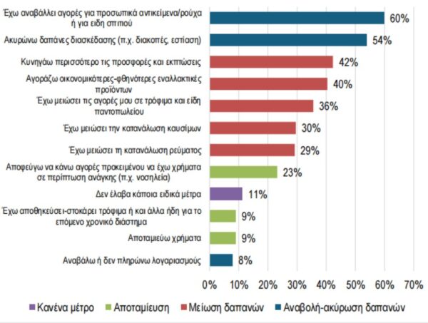 Το ποσοστό των καταναλωτών που δηλώνει πως δεν έχει λάβει κάποια μέτρα ως «ανάχωμα» στην ακρίβεια φτάνει το 11%